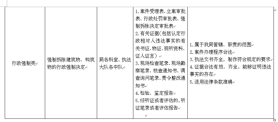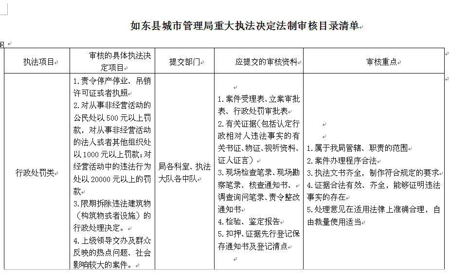 如東縣城市管理局重大執(zhí)法決定法制審核目錄清單